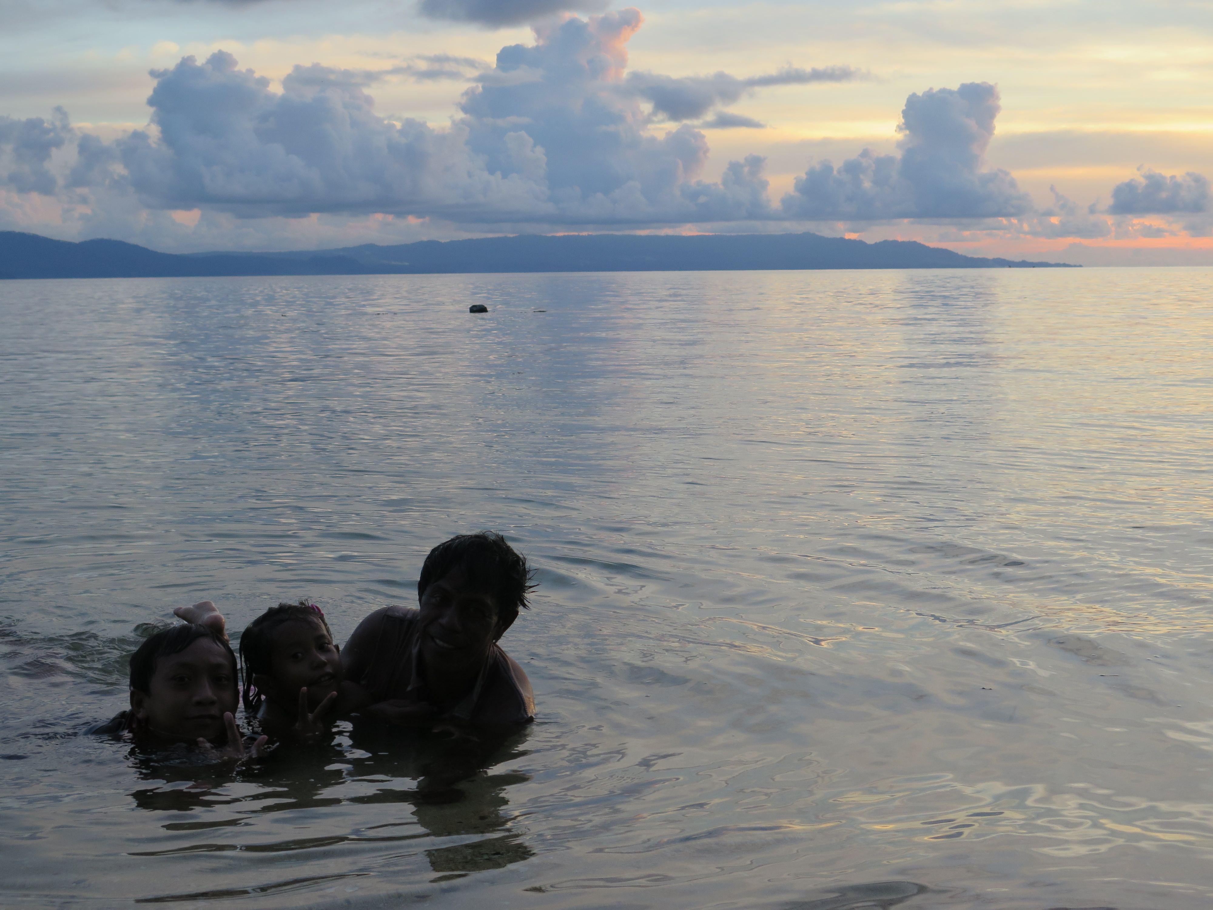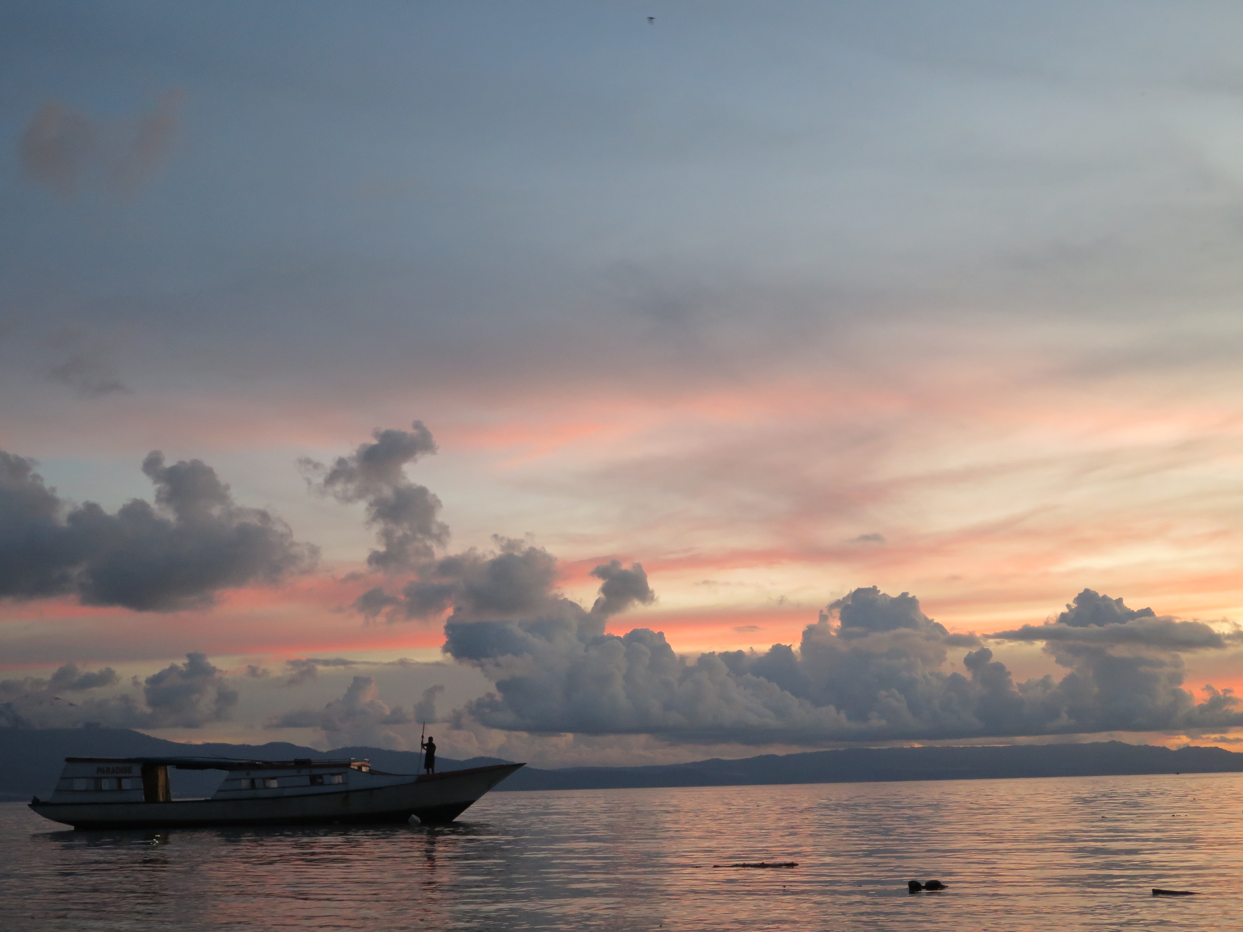 After a sun-drenched morning of snorkeling on the house reef or heading out with the dive boat, and then a long read and a siesta in a hammock swinging by the mangroves, we’d walk through the immaculate Kampung Kristen (ever on the lookout for Sulawesi beasties) to the southernmost tip of the island for a spectacular sunset. One eve I delighted in chatting with a primary school teacher and his two young children splashing in the shallows. They were from Papua and had traveled four days by boat to Bunaken.