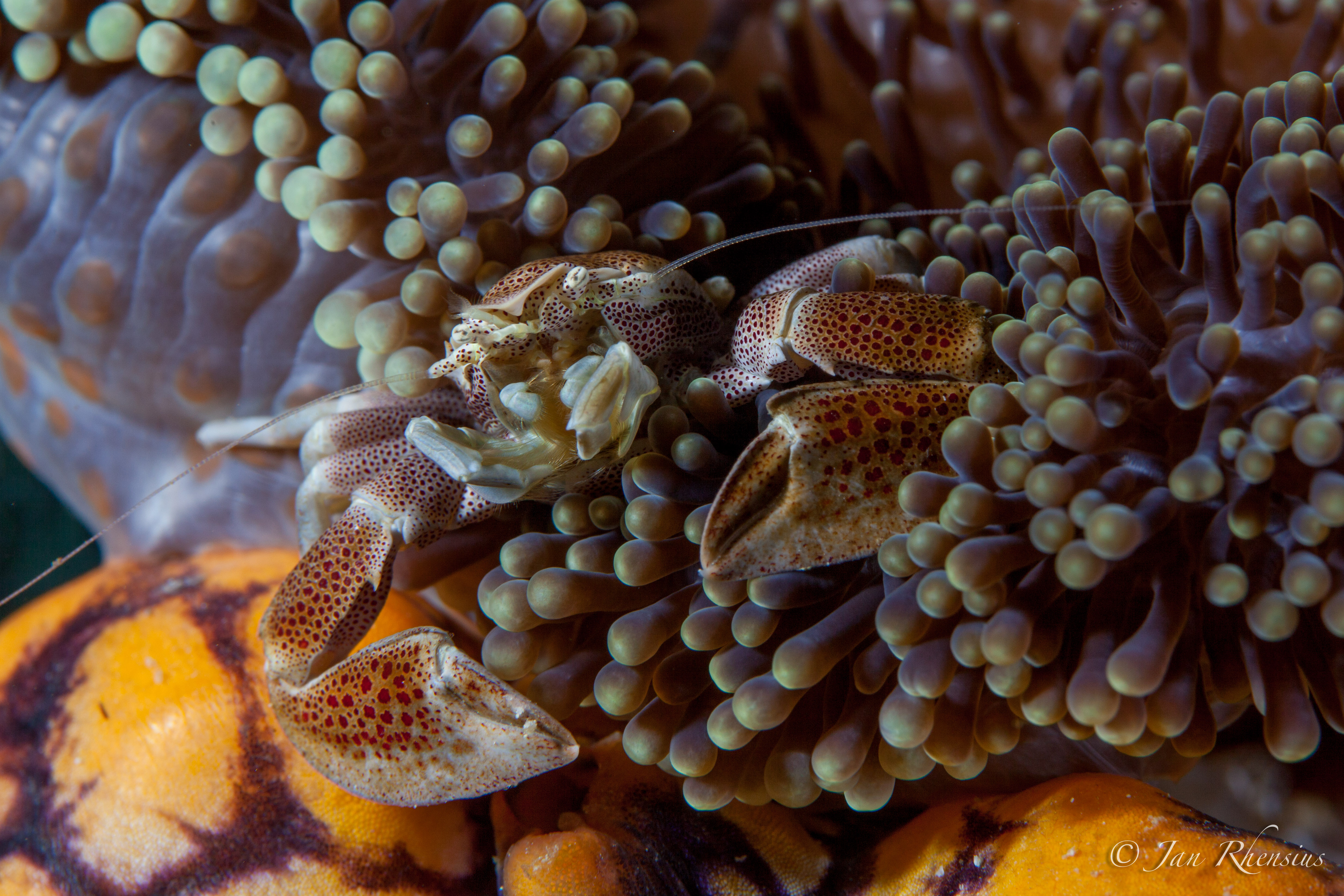 A rather majestic anemone crab. It takes a sharp eye to spot crustaceans, but it certainly helps knowing where they live!