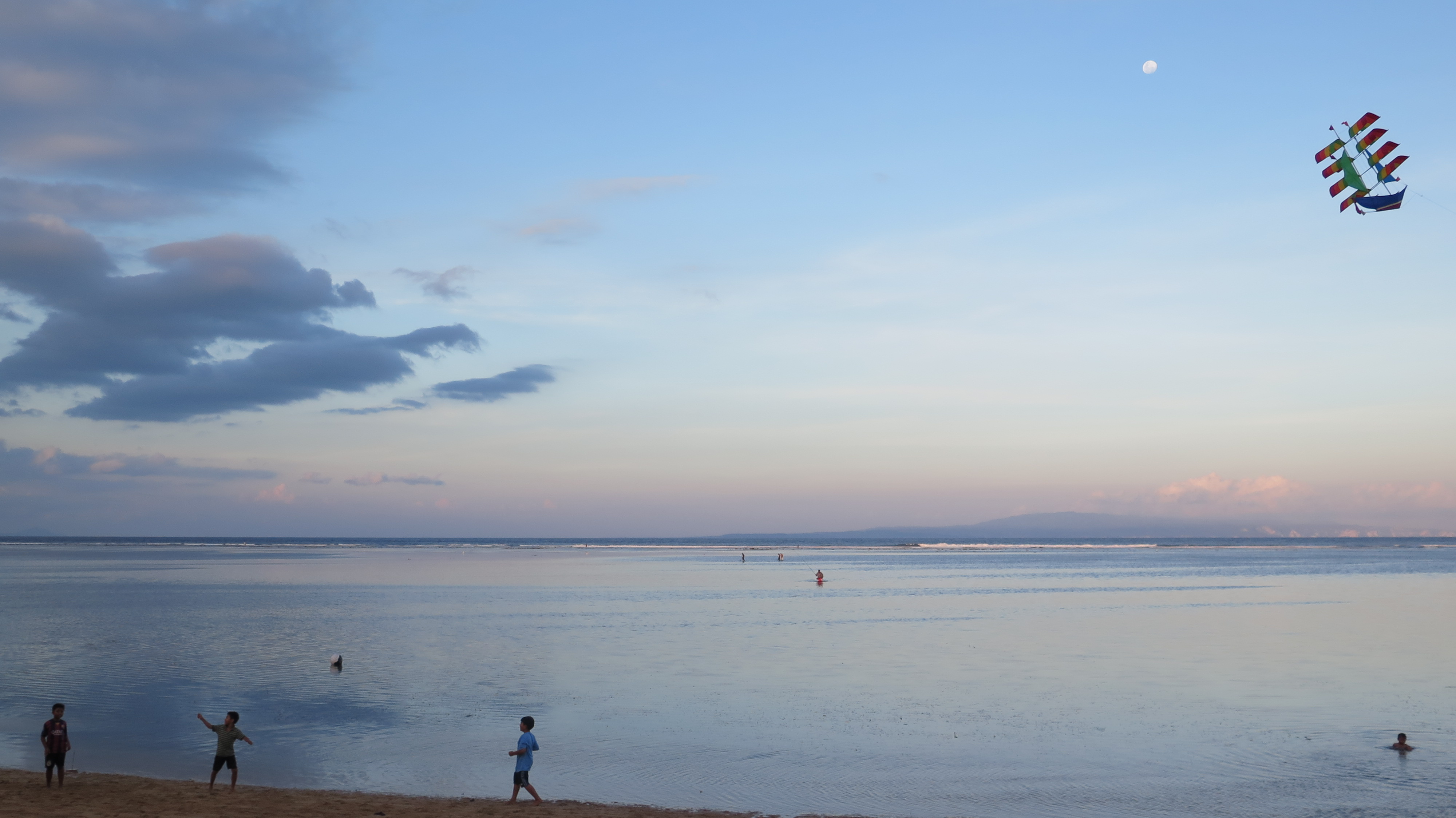 At the path’s southern end at Pantai Mertasari, the bricks become blanketed in sand as the coast extends in reclaimed land, a vast, flat expanse providing perfect kite flying conditions. I can almost always see kites above Denpasar and Sanur, and now it’s the windy season even more adorn the blue. The biggest are the Bebean; formed like open-mouthed fish they’re about four metres wide and ten metres long, their flying line as thick as a little finger. On a recent late afternoon walk I witnessed an impressive landing. Three men hauled in the line like it was rope attached to a hefty anchor while four seized the thrashing fish from the air, two of them stumbling from the force. Perhaps they were preparing for the annual international Bali Kite Festival next month, held just north of Sanur at Padang Galak. Hundreds of teams from around Bali backed by their own gamelan ensemble compete for best landing and longest flight, while international enthusiasts fly modern giants of extraordinary imagination.