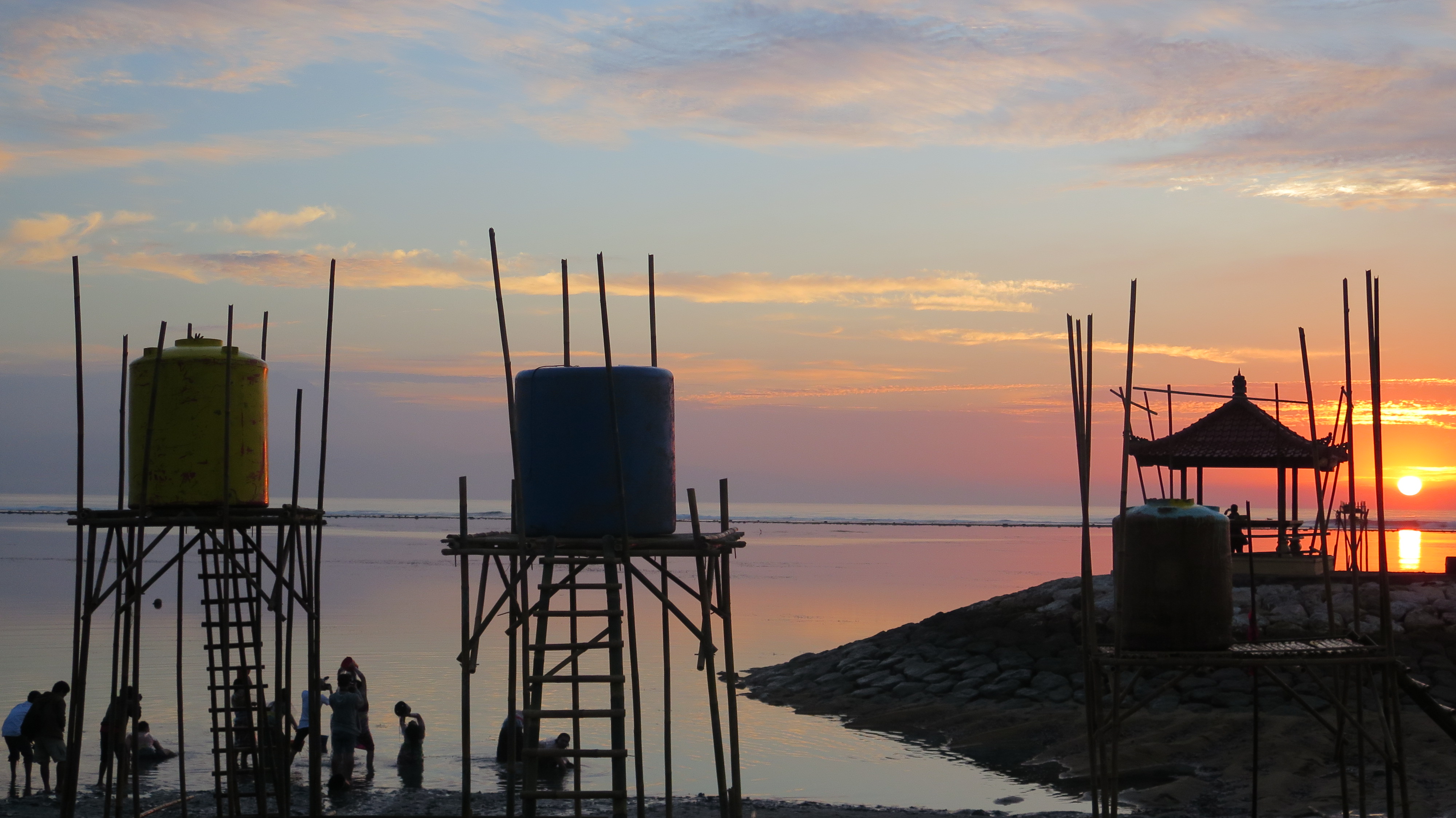 Never have I lived so close to the sea. Sanur’s coast is an almost constantly calm tidal lagoon protected by coral reef. When the wind is low at sunrise and sunset it glows like a vast mirror, glassy and incandescent. When the wind is high the sharp scent of seaweed sweeps across the waves from neighbouring islands Nusa Lembongan, Nusa Ceningan and Nusa Penida, where it’s farmed and dried in squiggly green sheets on their shores. On coruscating days the limestone cliffs of Nusa Penida, the largest of the three, are luminous. I’m mesmerised by the meteorological magic of a Sanur sunrise or sunset almost daily.