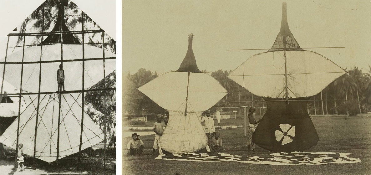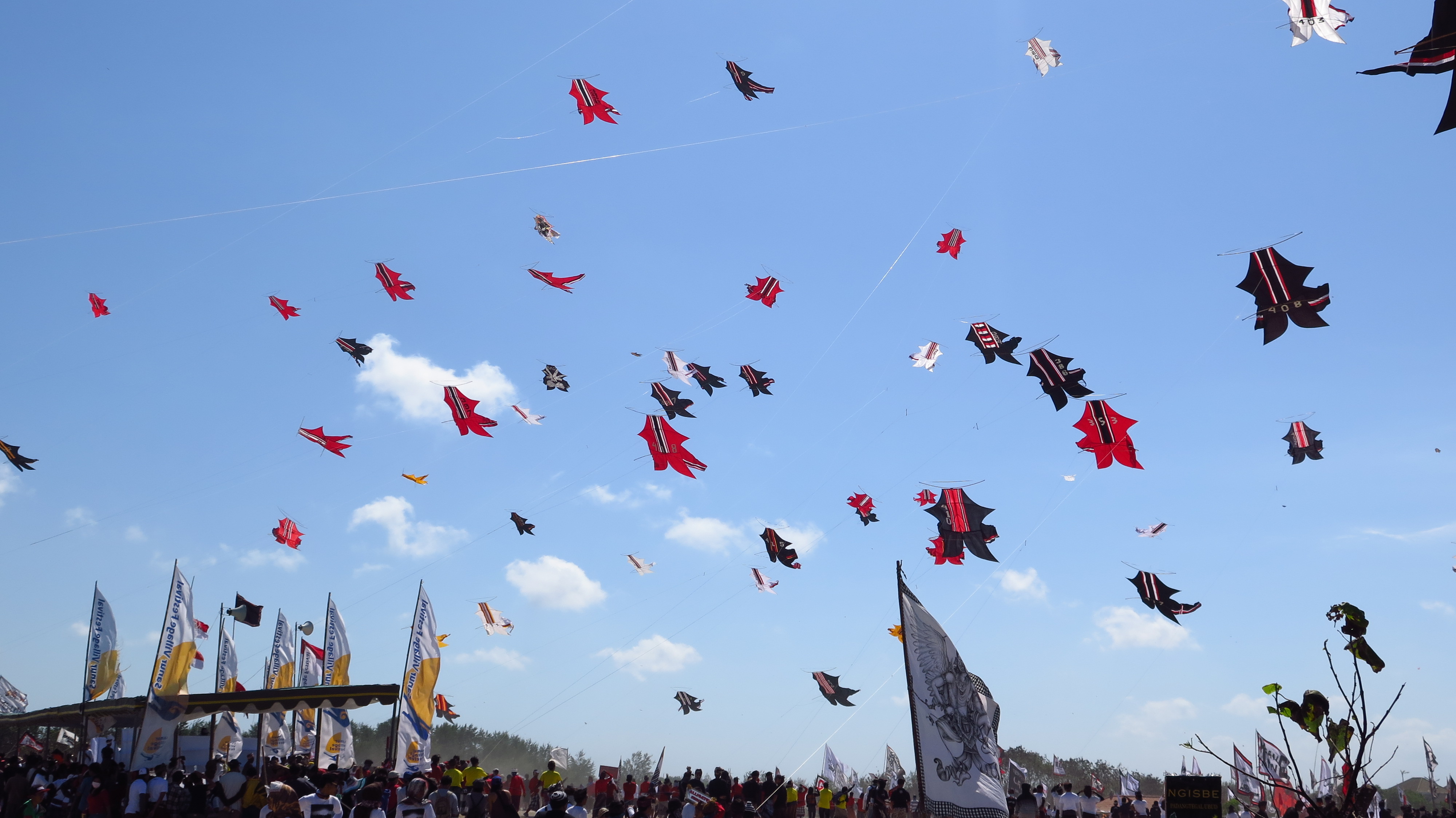 I did not discover all of this on the day – I was preoccupied with dodging flight lines and frantically snapping photos – but from a documentary directed by Erick Est, an up-and-coming Indonesian filmmaker. Janggan: Harvesting Wind‘s protagonist is a young Dutch-Indonesian woman; captivated by black and white photographs in a family album she travels from Amsterdam to Bali to explore their origins, interviewing master kite makers, religious elders and young flyers. Reminisces a wizened man with a gummy grin, “Tethered to a tree they could fly for three days. Fly above the clouds.” But naturally building and flying kites is not just about bonding and social cohesion. The childlike glint in this old man’s eyes gives the game away as he spins the story of Rare Angon.