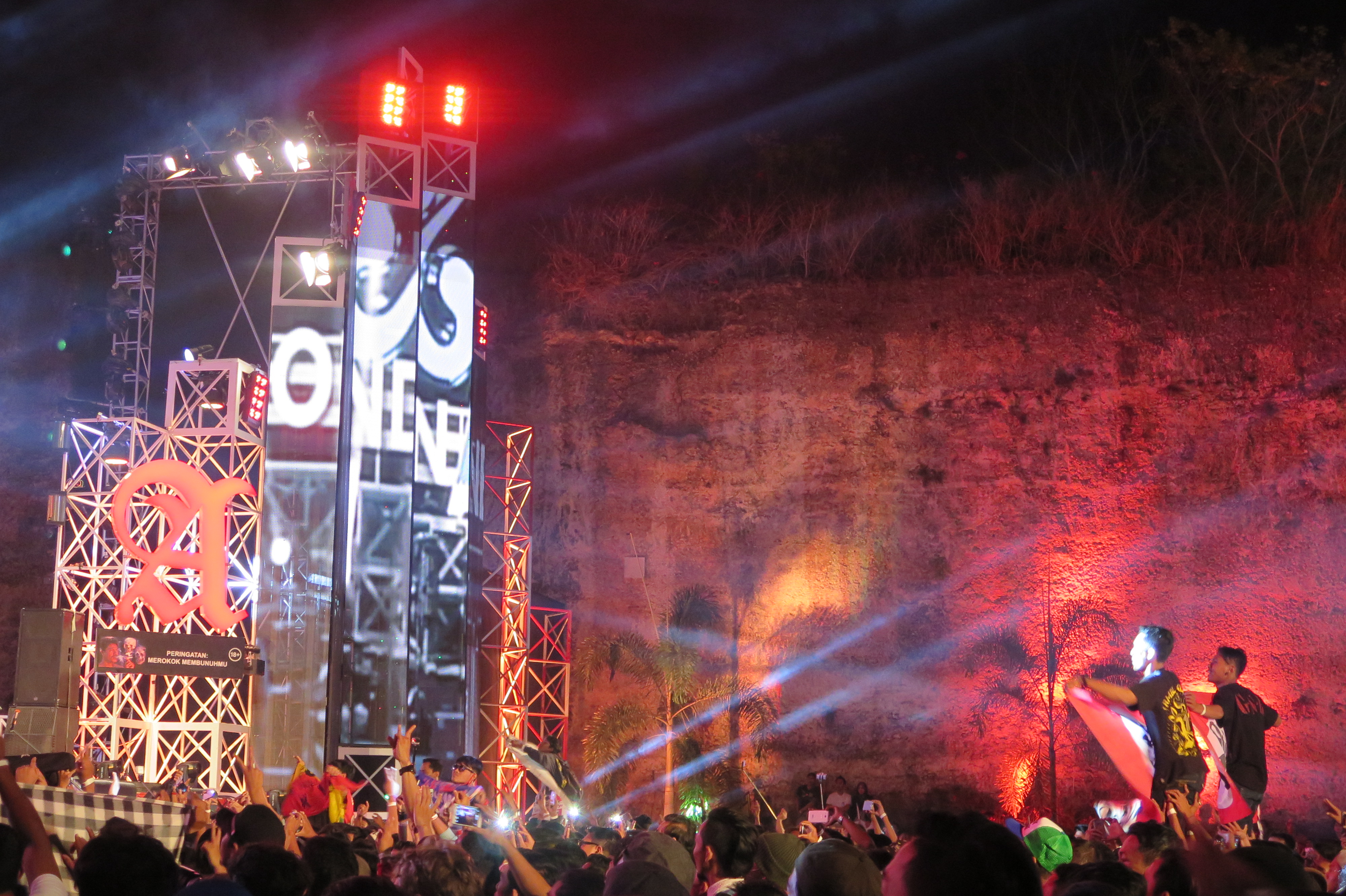 I wandered wide-eyed past the coruscating columns lining the entrance to Garuda Wisnu Kencana Cultural Park, and then dozens of bootleg t-shirt stalls, almost all of them peddling Slank merch; shirts, flags, posters, even pillows. It was like a Slank market, with snack stalls between the stickers and coffee mugs. Slank are, according to their website, Indonesia’s “biggest rock and roll band”. They’ve been around since the early eighties and there are still armies of Slankers (the official name for fans) across the nation. They headlined Jokowi’s massive concert on the eve of his election, and they were the Indonesian headliner of SoundrenAline, the penultimate act before Wolfmother. I was excited to see them.