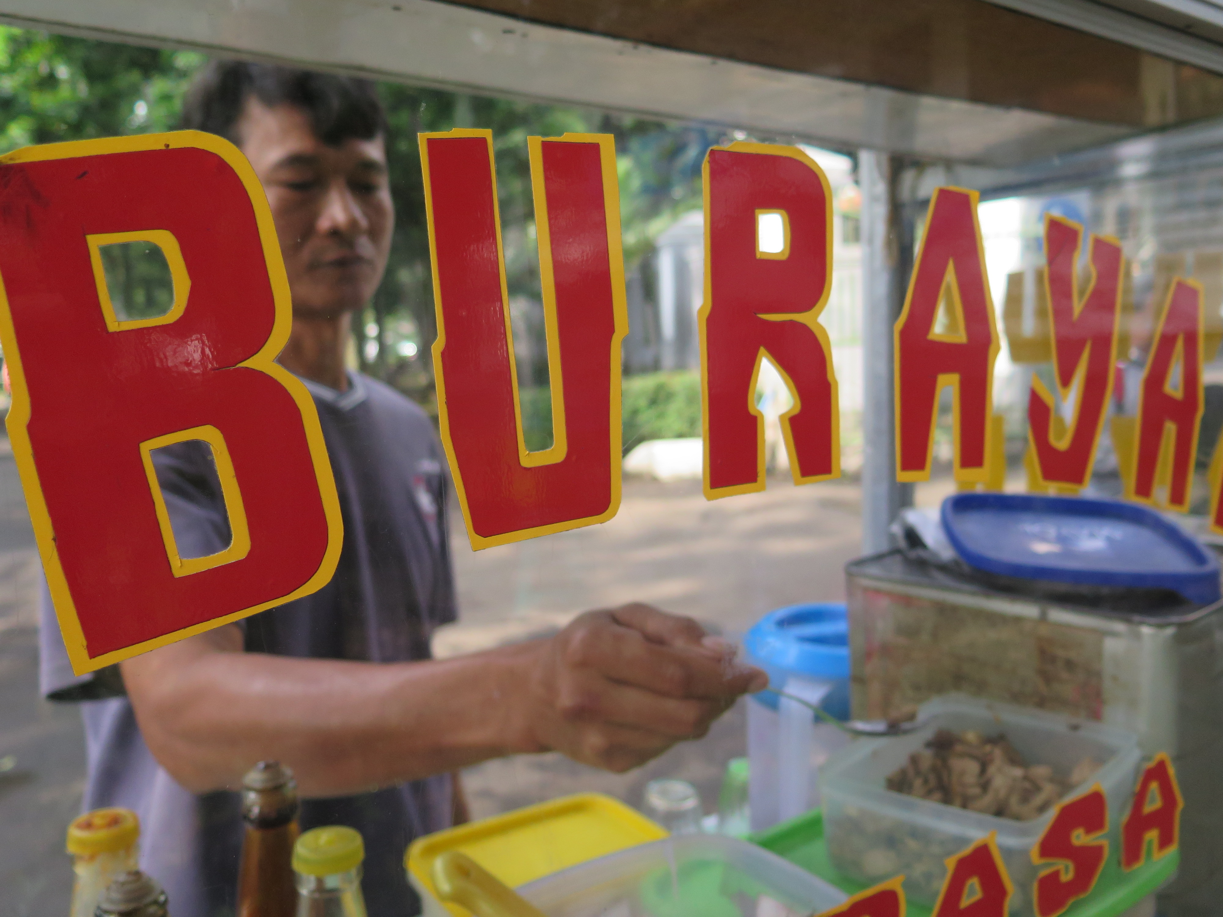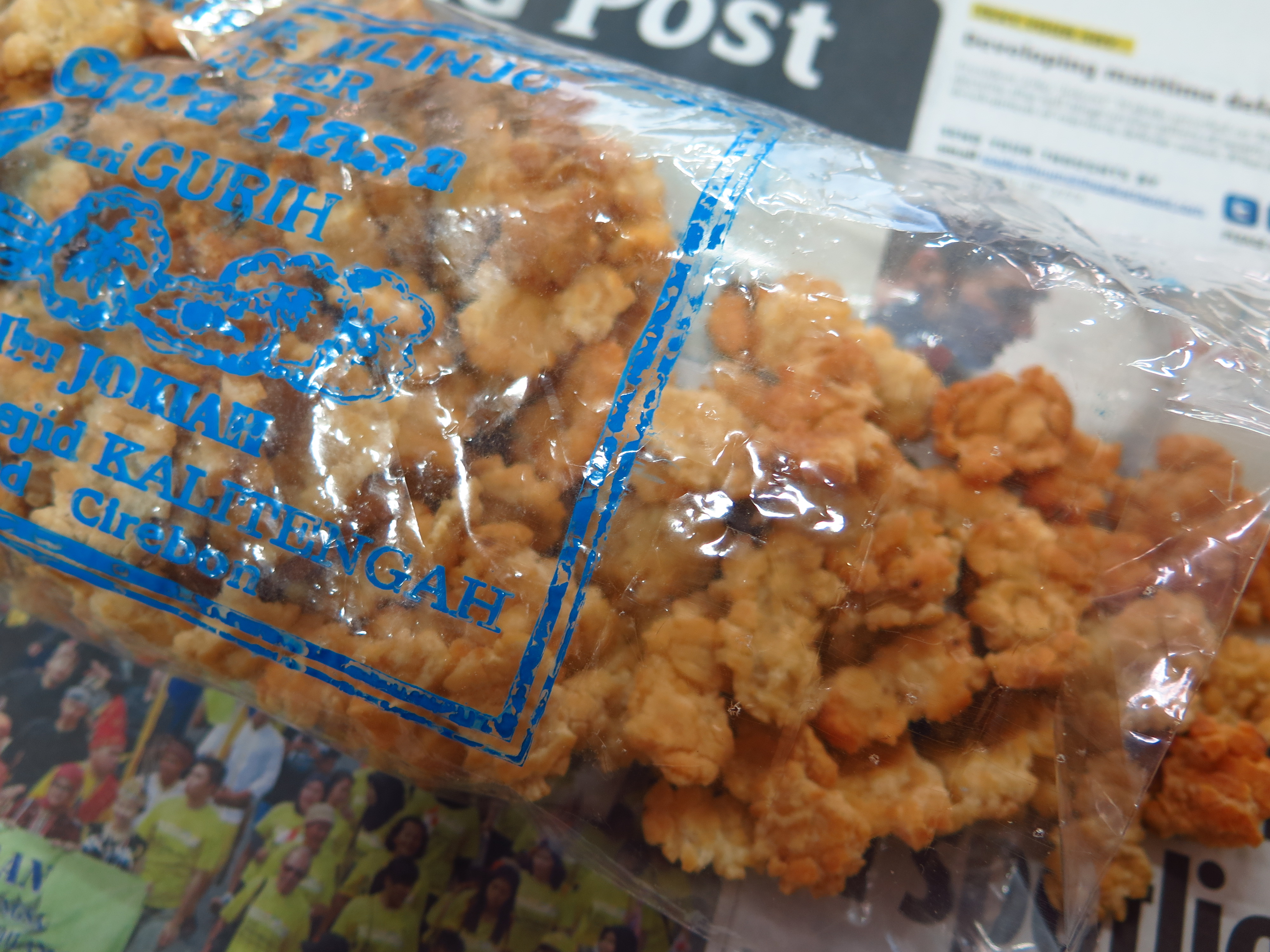 ‘Kerupuk’ are crackers and in Java they’re eaten with almost everything. Garden variety prawn crackers are consumed but they’re just one of hundreds of flavours that come in an infinite assortment of shapes and sizes. I often joke I’m on a ‘no kerupuk diet’ lest my plate of karedok is covered with them. Hardly a day goes by when I don’t smile wide at a tukang kerupuk almost entirely obscured by elephantine bags of DDN (the most popular brand) attached to his scooter. I’ve even witnessed serious anxiety when the unforgivable crime of forgetting to buy kerupuk for an office lunch is committed. My colleagues freak out.
