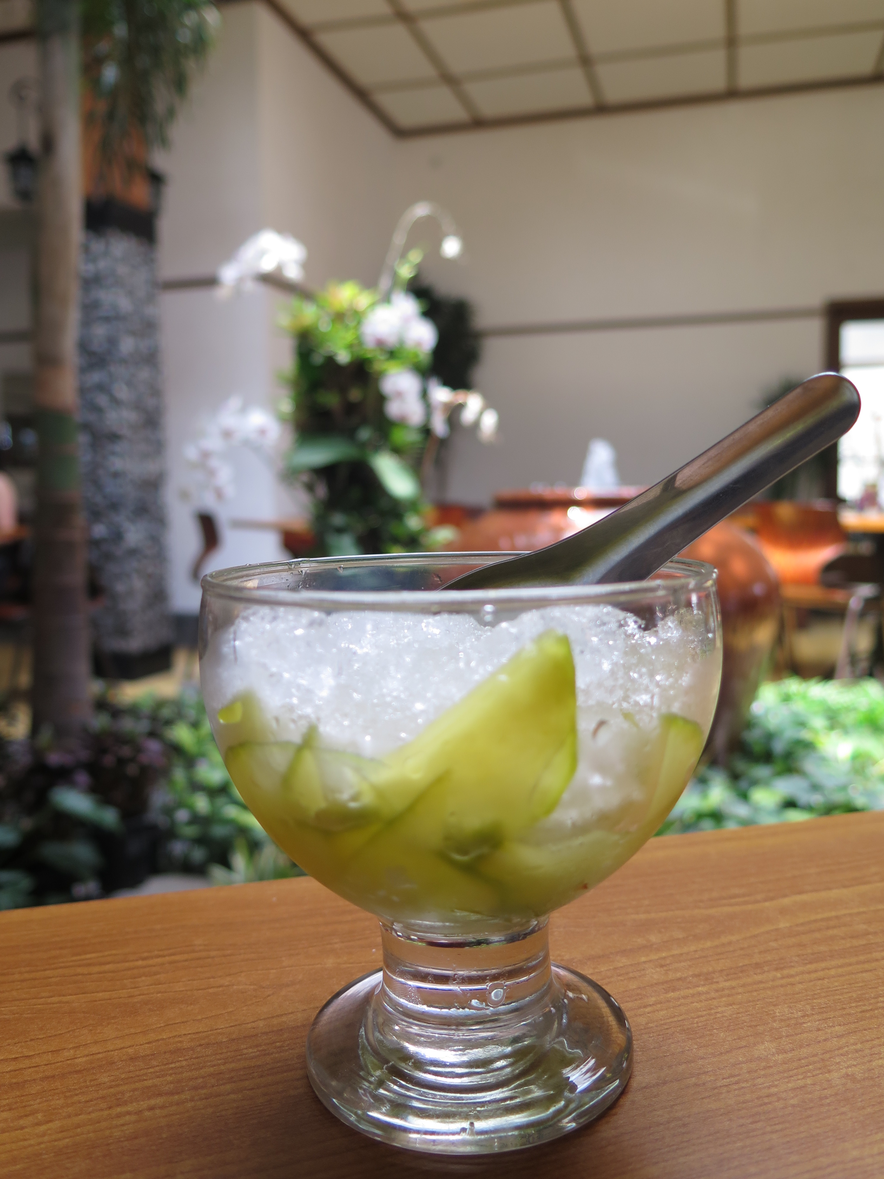 Ice, young mango and a smidge of sugar syrup; this pretty drink is perfect for spicy Sundanese lunches.