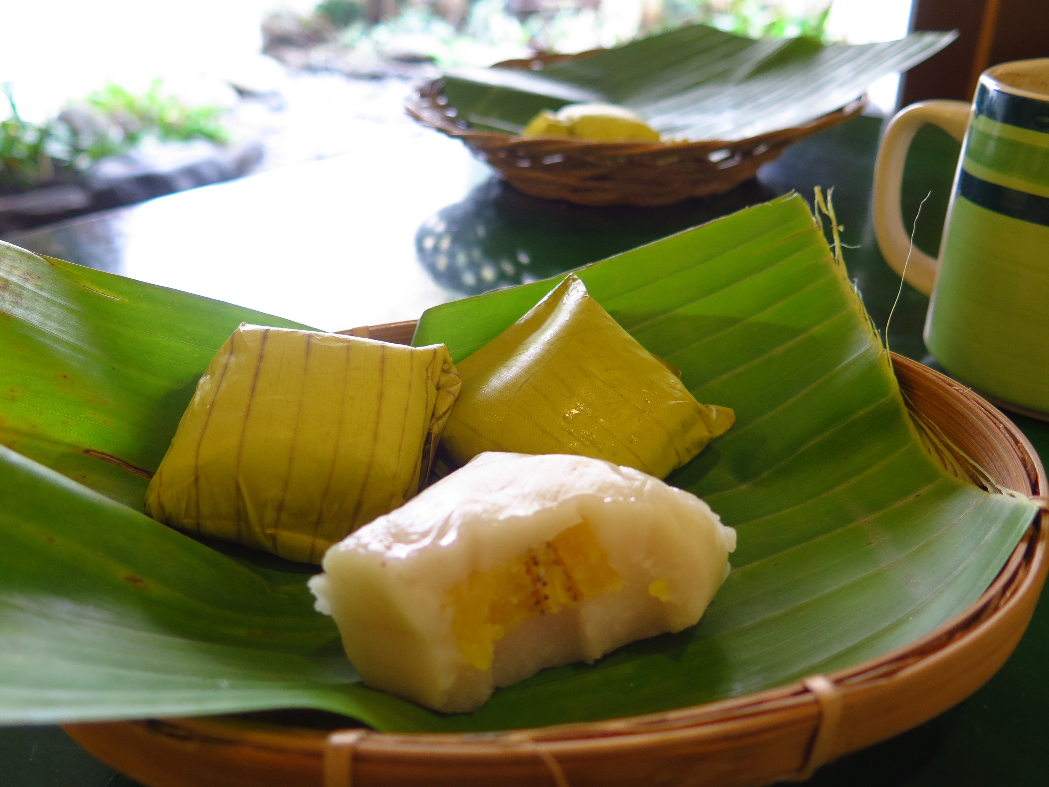 Of all the dizzying array of traditional Indonesian sweets nagasari is my fav. The rice flour (not glutinous this time) and coconut milk cake, which is wrapped in a banana leaf and steamed, is delicate with just a touch of sweetness and the big chunk of banana within is always rich and ripe. But I think the main reason I love nagasari is its name; ‘naga’ is dragon and ‘sari’ is essence, though I’m yet to discover how a little rice flour cake would have anything to do with essence of dragon.