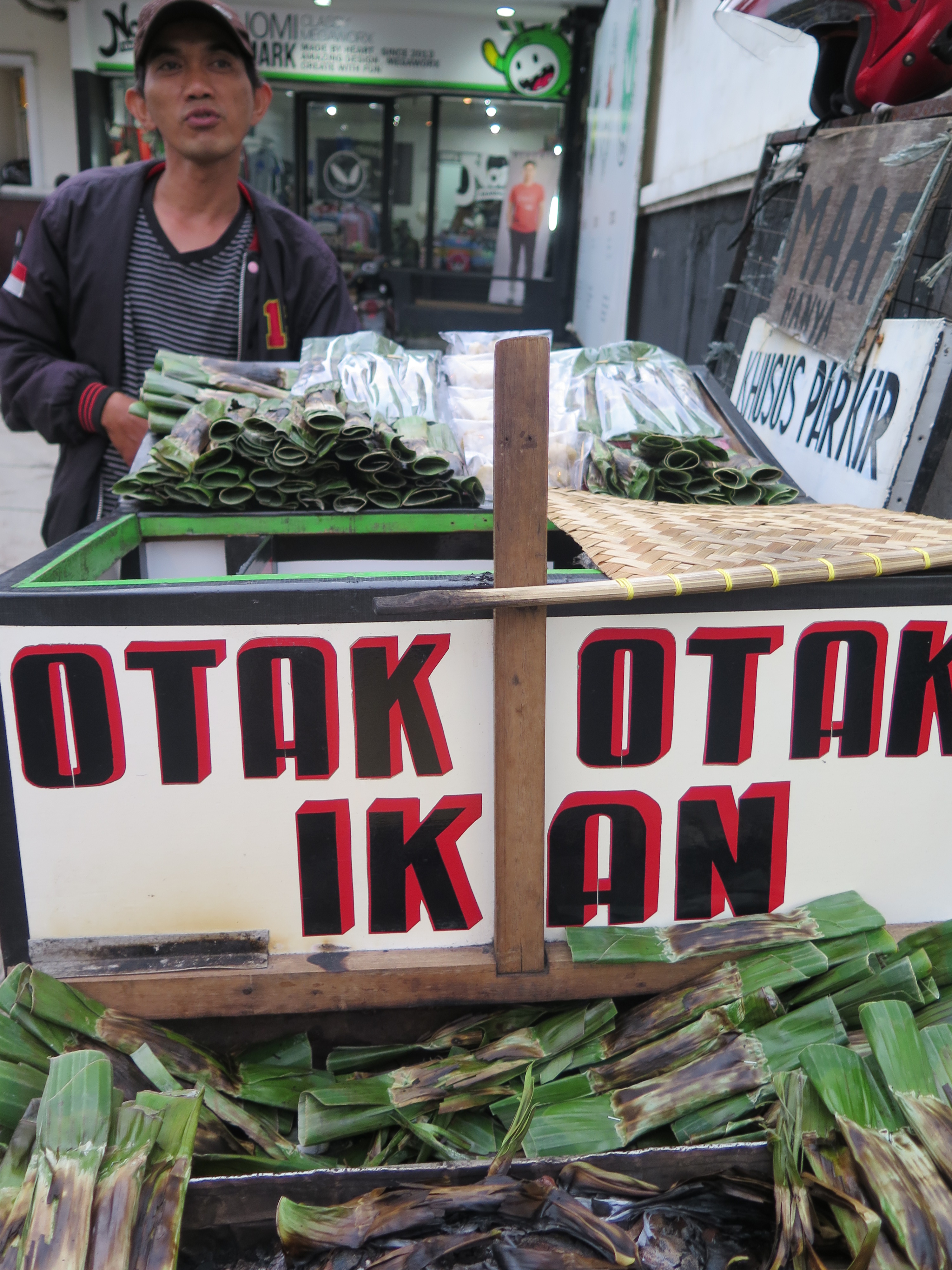 On my first day at my host organisation I was welcomed with a Sundanese feast and presented by the Director with a plastic bag of about 15 otak-otak. I insisted on sharing the charred green parcels but he was adamant I take them home. There was no way after that spread I was going to be able to eat another mouthful (naturally I had to try everything!), so later that day I happily presented the bag to the young man at my hotel’s reception. I didn’t have sufficient Bahasa at the time to explain but he smiled and said cheerily, “Ini kesukaan istri saya!” I didn’t know ‘kesukaan’ but I knew ‘istri’ was wife. His wife’s favourite? “Dia sangat suka?” I enquired. “Iyaaaaaaa! Suka sekali!” he replied. Bagus!