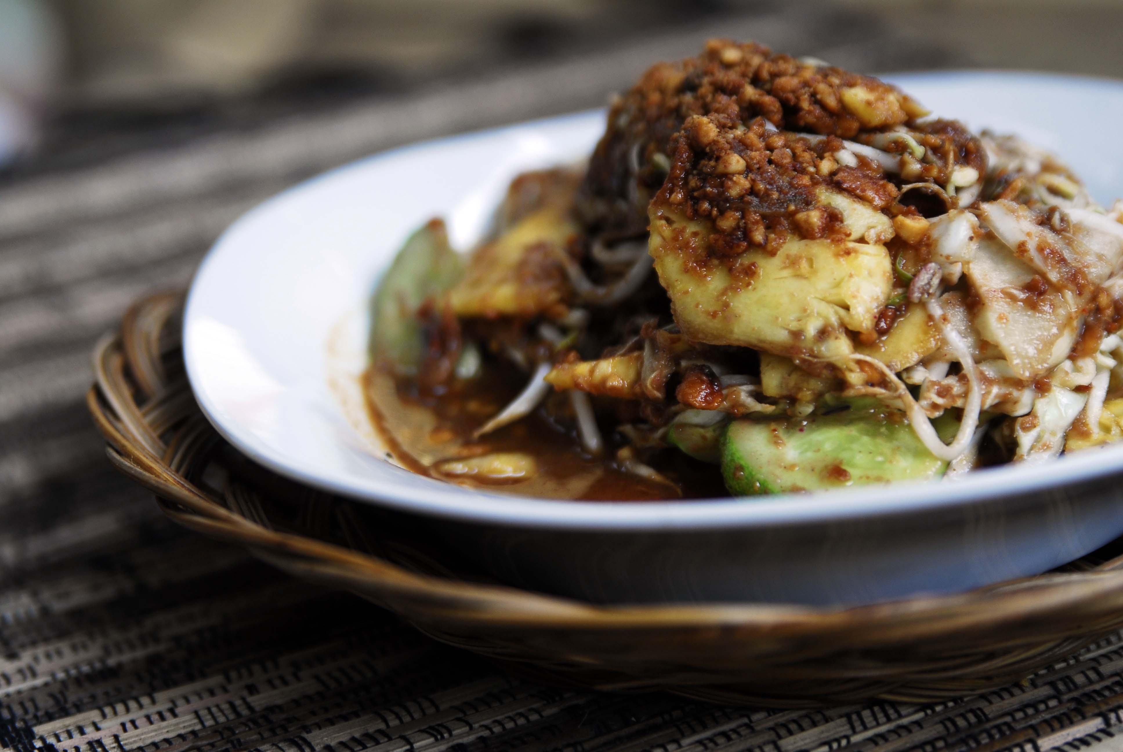 This Sundanese salad is generally always available alongside karedok as they’re dressed with the same saus bumbu bumbu (sate sauce) and made with the same method, but unlike karedok its ingredients, green beans, cabbage, bean sprouts and lemon basil, are steamed, not raw. After discovering lotek I knew I’d probably never go back to gado gado as lotek is similar but not as stodgy.